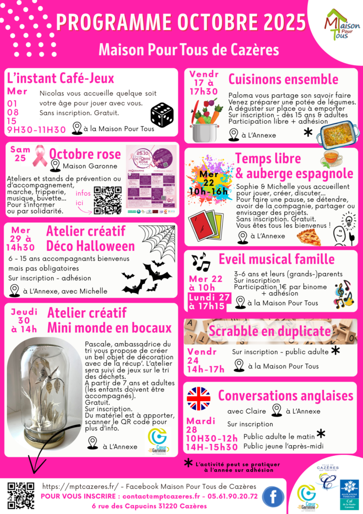 Pour « cuisinons ensemble », pensez à apporter vos bocaux si vous souhaitez repartir avec le repas !